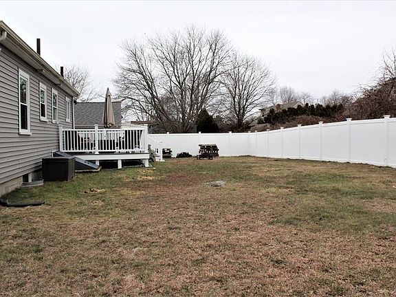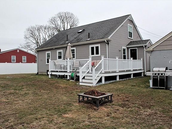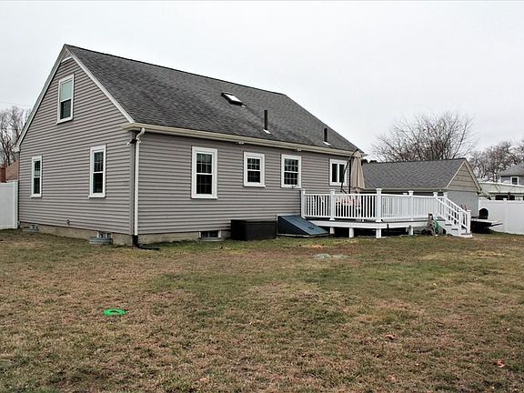 Oversized Cape featuring 4 bedrooms and 2 full baths with a 1 car detached garage. Newer roof, siding, windows and doors. Large fenced in back yard featuring updated deck with Trex decking and white vinyl railings. First floor has two large bedrooms, full bath and an eat in kitchen opening up to the spacious living room. Upstairs features 2 additional large bedrooms and another full bathroom. Finished basement includes laundry and family room /playroom. Perfect house for a growing family or someone starting out. Located on a quiet street and only minutes from the highway.
