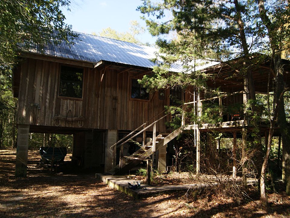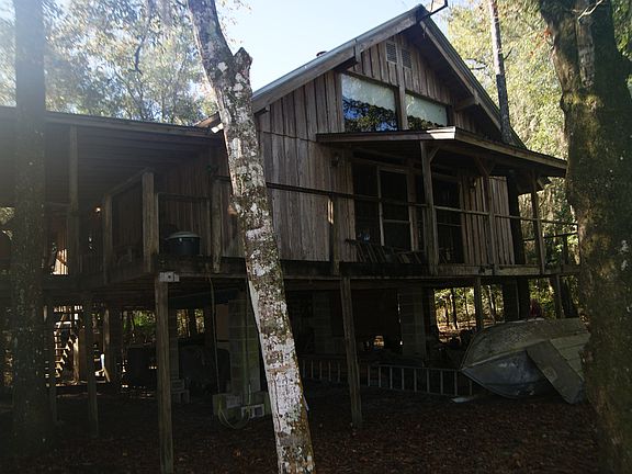 Two Bedrooms Plus a Loft that sleeps a bunch! One Bath in house and one down stairs. Can't even think of building this close to water now! Absolutely fabulous views of river from house and dock. Walls and flooring in are pine (not in bedrooms they are carpet) Outside wood is all Cypress. Very open and very much a warm cozy home in the woods. Public Boat Ramp just two lots away. Can't get much better than this for a weekend get away home!
