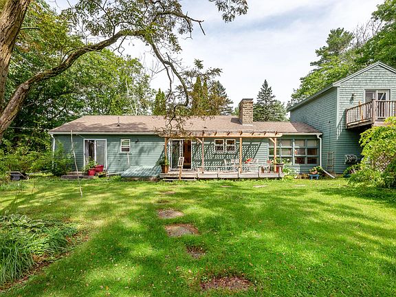 Sited on 2.32 lush acres with 200' frontage on Mill Pond in Bath, is a dearly loved ranch style home. The lovely front patio welcomes you to this home with mid-century modern vibes. A stunning family room with walls and ceilings wrapped in cherry panels, a massive stone fireplace and walls of windows is directly off the patio. An ample living and dining space with a full wall of bookcases and hardwood floors is warm and inviting. The kitchen with its new cork floor is compact and efficient with a view to the garden. A den is located just off the kitchen and has access to the deck plus a half bath. The far end of the home has two very spacious bedrooms and a full bath. Fabulous back yard with multiple decks and views of trees, gardens and the pond. All of this plus a studio located over the garage is the perfect place for hobbies or an office. Just minutes to downtown Bath and all of its amenities.
