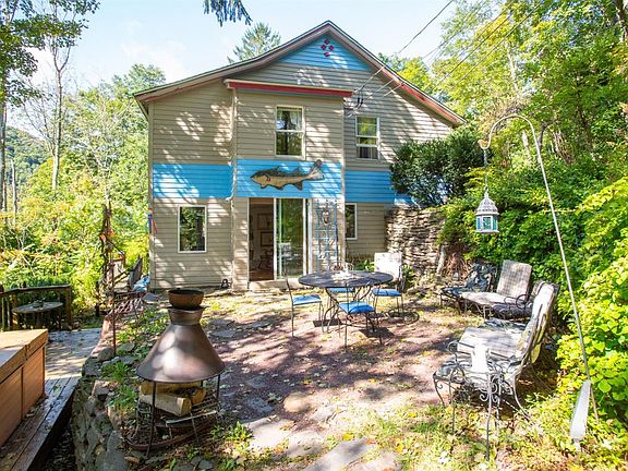 You must see this ABSOLUTELY CAPTIVATING, Catskills Hillside Getaway . . . over-looking VLY CREEK, and just under 2 miles to the SKI SLOPES of BELLEAYRE! You will LOVE . . . the grotto inspired hidden OUTDOOR DINING SETTING surrounded by the rushing sounds of the river below, the open ENTERTAINING LOWER-FLOOR (living/dining/kitchen), master en-suite, outdoor 2004 spa tub, the 3-season small ARTIST STUDIO with electric heat, the bike/hike/ski RECREATIONAL STORAGE SHED, views of the ski trails, and . . . that the property extends into the middle of the renowned trout river - VLY CREEK. There are LOT'S of UPGRADES . . . an outdoor dining deck, newly renovated kitchen, lovely wood floors, new 2019 roof, exterior painted 2019, insulated thru-out, new 40-gallon hot water heater, new first-floor kerosene Monitor heating unit, electric heat with separate thermostats in each room, town water-sewer and . . . HIGH-SPEED Cable and Internet. This charming home on a quiet dead-end, town-maintained lane, is the perfect location to all the nearby destination recreational and lifestyle highlights: skiing (Belleayre and Plattekill), hiking and biking trails, the Catskills Recreation Center (with indoor pool), farmer markets (Halcottsville Round Barn), incredible farm-to-table restaurants and eateries . . . PLUS 2 miles to BELLEAYRE BEACH offering swimming, boating, fishing, picnicking, horseshoe pits, volleyball and basketball! Thinking of AirBnb for incremental income? This home is already a top-booking property!