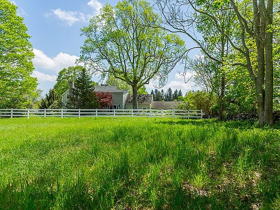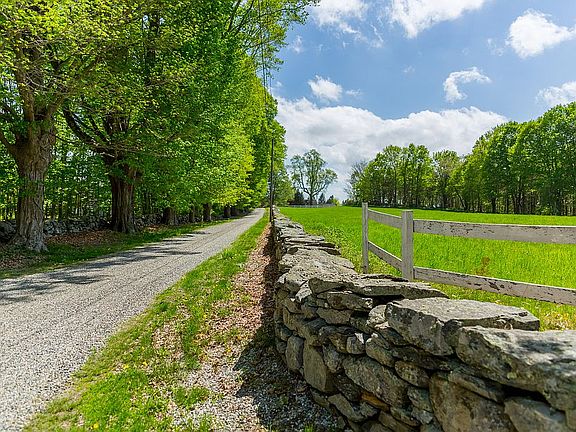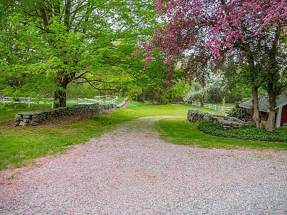 This spacious and tasteful country home sits off-road on a knoll, overlooking fields, pastures, barn and equestrian facilities. Well appointed formal rooms with natural light, large family room/library with built in shelves and window seat, large country kitchen with soaring ceiling. Attractive barn with 5 horse stalls and loft, dressage ring with rubber mulch footing, lighted outdoor riding ring, and other outbuildings for workshop and storage. A very special equestrian property.