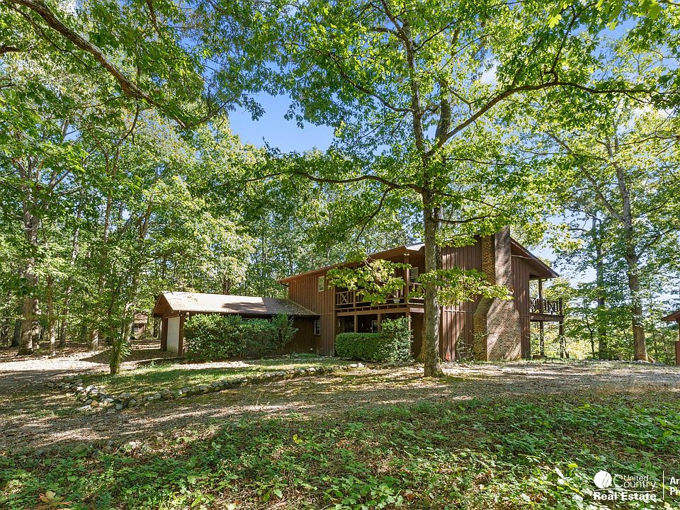 River front ranch for sale in Arkansas. Seventy three acres with rustic 3 bedroom 2.5 bath home on a hilltop with mountain views. The home is spacious, has two balcony/upper decks and is nestled amongst the large oaks. Several outbuildings including a painting studio (could be converted to a guest cottage), wood shed, equipment shed, shop, large barn with double sliding doors. The home has new hardwood floors on the main level and has an attached two car garage. The land is mostly wooded with large merchantable hardwood and pine timber. Dead end road location for great privacy and the property offers excellent hunting and fishing opportunities. The ranch has over 1,200 feet of Ouachita River frontage and has two hay meadows. These properties seldom come up for sale so ACT NOW!