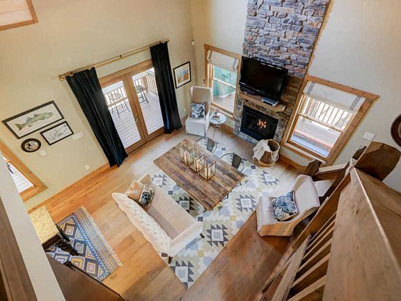 LIVE IN THE TWIN COVE RESORT COMMUNITY! Ideal as a primary residence, long weekend getaway or rental property, this updated 2-story basement cabin can sleep up to 11 and includes a spacious open main living area, main level bedroom and a finished basement. Features include a cozy floor-to-ceiling stone fireplace & high vaulted ceiling in the great room, a gorgeous sliding barn door to the bathroom in the main level bedroom, a charming open kitchen with granite counter tops, Terrazzo tile & rustic hardwood floors, lofted bonus room area upstairs and a tankless water heater (ideal with many guests). Enjoy the hot tub and relaxing back decks (main & basement levels) that overlook the quiet wooded property. Located within walking distance of the Marina, community pool and Twin Cove restaurant.