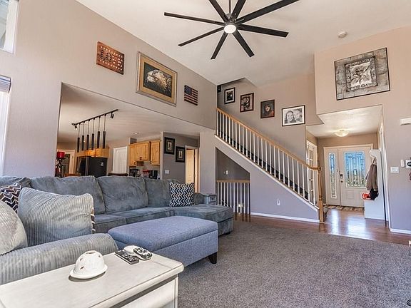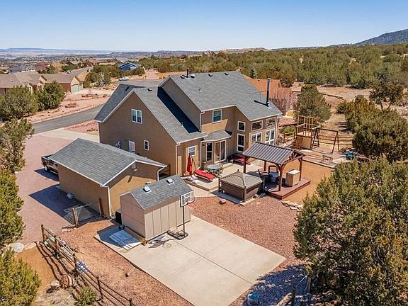 Gorgeous 2 Story with fully finished basement and you can't beat the location of this home as it backs up to BLM land. Walking into the living room you notice the high vaulted ceiling and floor to ceiling windows to capture the amazing view. New custom blinds withremote control allow you to determine how much natural light is just right for whatever mood you find yourself in.StylishKitchen with breakfast bar, nice size pantry and beautiful hardwoodfloors. Dining Room with upgraded light fixture. Attractive new ceiling fans throughout.Themain level master suiteincludeswalk-in tiled shower, double sink vanity and modern soaker tub.An executive office/den with french doors, Laundry room with cabinets and sink. A 1/2 bath finishes out the main level.The upper level has 3 good size bedrooms and 1 full bath. Basement is set up for mother-in law living with a2nd master suite and new 3/4 bath, New Kitchenette with a full Refrigerator, Wall Oven, Microwave, and Sink. Large family room with New Mini Split.The 2nd bedroom has access to an additional bathroom and for your convenienceWasher and Dryer hookups. Chair Lift to Basement. 2 car attached garage and there is also a detached one car garage. Fenced backyard, Gazebo, covered front porch, RV parking, Shedand of course breathtakingviews.