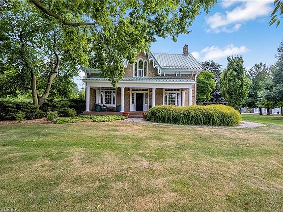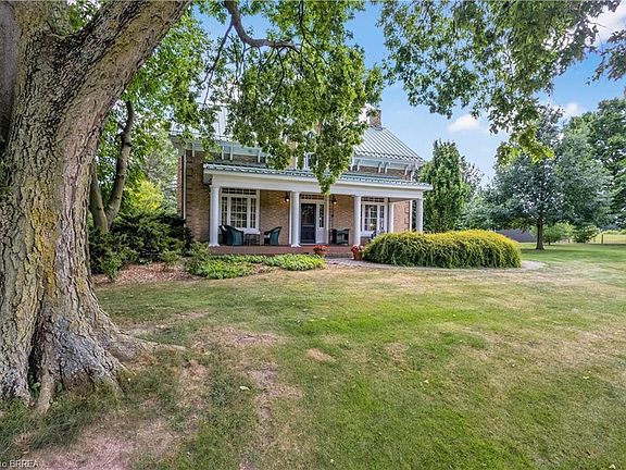 Opportunities to live along the Heritage Grand River are few and far between. Welcome to a truly one-of-a-kind property nestled along the scenic and historic Grand River. Steeped in history and lovingly restored over 52 years by the current owners, this stately Classical Revival home, accented with Gothic Revival features, was originally constructed between 1903 and 1908 using bricks from a local brickyard in nearby Newport. The charm of the early 20th century meets modern comfort throughout this timeless residence. The grand front verandah, supported by majestic round columns, was thoughtfully restored and upgraded with low-maintenance TREX composite decking in 2019, the perfect place to take in the river views. Inside, the home exudes warmth and character with original wide pine plank floors and impressive 18-inch baseboards throughout. The spacious, bright kitchen is designed for both entertaining and everyday living, featuring high-end appliances, a cozy propane fireplace, and a new hickory floor (2010). Large windows offer panoramic views of mature trees including maple, sycamore, catalpa, oak, and walnut. The property includes a 3 car garage built in 2014, complete with imported Frenchporte automatic doors, providing ample space for vehicles, tools, and outdoor equipment. For the ultimate escape, retreat to your private log cabin, relocated from Six Nations and carefully restored to create a peaceful sanctuary. Whether you're watching herons glide over the water, launching a kayak from your cement boat ramp, or enjoying the ever-changing beauty of the river from your front porch, the sense of tranquility here is unmatched. A piece of the property's rich history, the 1938 barn has housed everything from chickens and Angus cows to horses and rescue ponies. Today, it’s home to one charming resident: Rocketman, a miniature horse. Don’t miss the chance to own this extraordinary waterfront estate, a rare blend of history, nature, and timeless beauty.