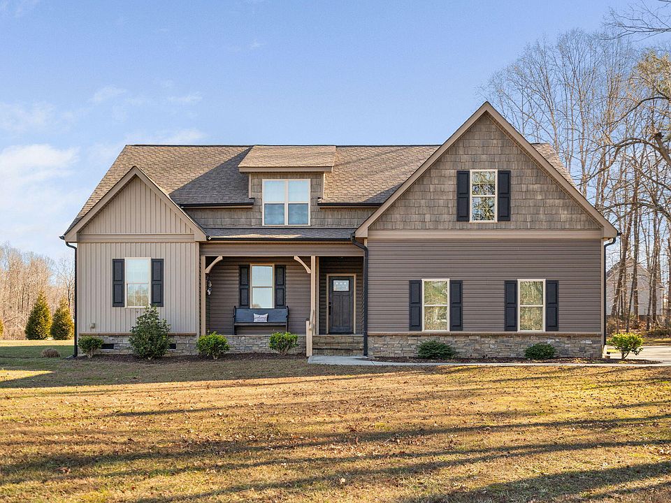 Welcome to your serene retreat in Timberlake's Waters Edge community. This 3-bedroom, 2-bath ranch home blends privacy & comfort on approx. 1.35 acres. From the front porch, step through the foyer to an inviting open vaulted family room. The gas fireplace is the room's centerpiece! The open kitchen features warm cabinets, granite, a large island, SS appliances all complemented by modern lighting & a dining area. The primary suite boasts a large WIC & an ensuite bathroom with a double vanity. Two additionall bedrooms share a full bath. Upstairs, a large bonus room offers workout, craft or entertainment options & barn doors reveal a 2nd-floor office. Walk-in attic storage! Screen porch plus a gas grill. The side-load 2-car garage adds convenience & curb appeal. This home is move-in ready and offers easy access to nature, shopping & dining in Hillsborough, Durham, Roxboro, and Chapel Hill. Make this exceptional home yours today!