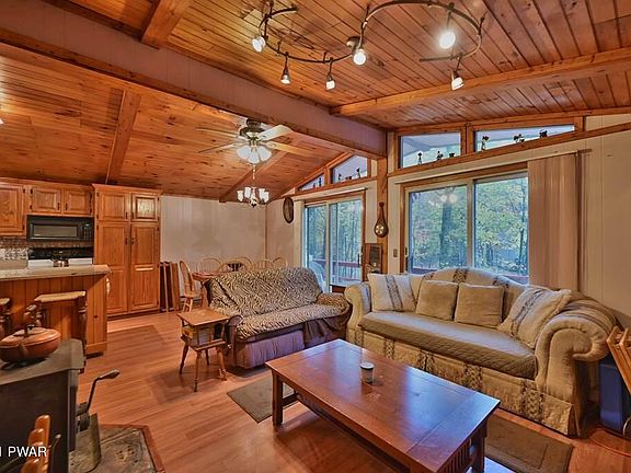 Masthope Ranch home located on quiet community road features 3BD, 1BA, open floor plan, updated kitchen, wood stove that heats the whole house, crawl space and storage shed. Lot backs up to privately owned land. Home being sold furnished and has new grinder pump installed 10/2021. Masthope amenities include skiing, outdoor pools, horseback riding, ATV trails, fitness center, restaurant, garbage, Delaware River access and park, motor boating lake w/ white sandy beach.