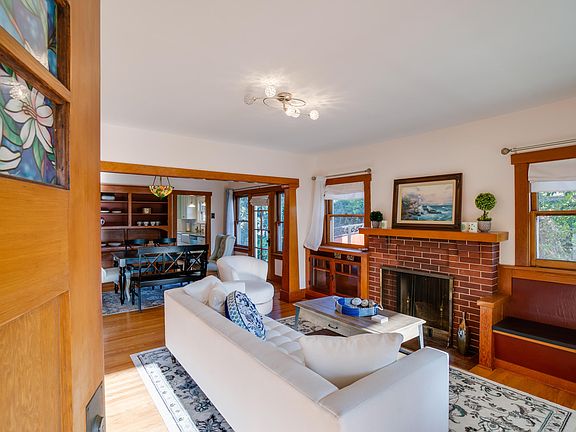 Quintessential Pasadena Craftsman at its finest! Situated in the lovely Caltech neighborhood this property is centrally located to Old Town, shops, restaurants, coffee houses, parks and the highway. Well appointed and tastefully updated this home offers mountain views, expansive yard space, hardwood floors, original wood details throughout, and tons of natural light. An inviting landscape and large front porch welcome you. Enter into a living room with a fireplace and stunning woodwork with built-in seating. The open concept leads into a large dining room area with original cabinetry. The kitchen features stone countertops, stainless appliances, and a mud room perfect for laundry and access to the California basement with lots of storage. Two nice sized guest bedrooms frame the north side of the home with a large guest bath boasting beautiful period tile and tub/shower. Master suite offers a large closet and en suite bath with french doors that open out to a dedicated deck. The large backyard features a built-in bbq area with fridge, firepit area, lounge area, garden, storage shed and plenty of room for a pool.l Detached one car garage.