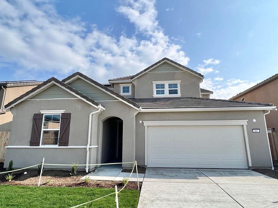 Entry into the Saffron is greeted by a dramatic two-story entrance and a view to the open great room. The open floor plan integrates the formal dining space with the great room and kitchen, maximizing the livability of the home. The kitchen features an oversized island and wrap-around counters, leading to a generous pantry, perfect for the needs of a growing household. The laundry room provides a private space to unload from the day when entering from the garage. A discreet coat closet is tucked under the stairs leading to the second story. Once upstairs, a spacious loft takes advantage of views towards the front of the home and provides space for numerous furnishing configurations. Near the landing, dual bedrooms flank a full hall bath and a linen closet. The oversized Primary Suite is located at the rear of the home boasts numerous windows allowing maximum natural light to illuminate the space. Dual vanities in the Primary Suite bath frame a window overlooking the yard, washing the space in another layer of light, while a sprawling walk-in closet completes the space.This home is currently under construction, and features the following options and upgrades: Roof tile Pre-plumb connection in garage White cabinetry Double pull-out drawers in kitchne Trash pull-out in kitchen And more!Located on Lot 71 at The Crossing II by Century Communities