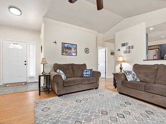 Proudly introducing a pristine 4-bedroom, 2-bathroom gem in the heart of Pueblo West. Drive up to a beautifully maintained property showcasing a spacious 2-car garage. Step inside to find a meticulously kept home that radiates warmth and charm. Natural light flows effortlessly, highlighting the quality fixtures and finishes throughout, including the gas log fireplace in the open living room area with kitchen and dining area attached. And here's the showstopper: Your very own private 7-hole putting green nestled in the well-landscaped backyard! Plenty of outdoor lighting and perfect for golf enthusiasts or those who love outdoor entertainment. Imagine hosting weekend brunches or practicing your put under the Colorado sky in your own back yard. Location is prime - close to schools, shopping, and local amenities. This house isn't just a home; it's a lifestyle. Don't miss this unique opportunity to own a slice of Pueblo West paradise! This house will not last long, call today to Get Your Golden Key!