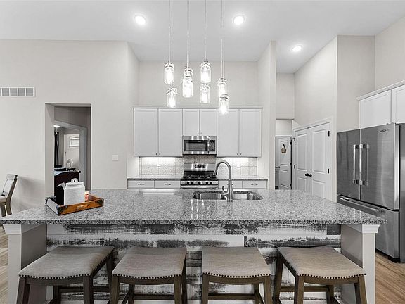 Impressive 3 BD, 2 BA, 1,929 s/f ranch in the Villages at Sandfort Farm! Enjoy carefree living in a fantastic location w/community pool, pool house, playground, walking trls and over 33 AC of common ground. Features inc 9-12 ft clngs, gas FP, LVP flrs, 42 inch cab w/crown, granite c-tops, SS appl, gas range, island w/seating bar, wr iron stair balusters, Primary Suite w/Sitting Rm, 2 W/I Closets w/org, dbl bowl vanity in the Primary Bath, shower, comfort height commodes, raised height bath vanities, 3 car tandem garage, M/F laundry, R/I bath, Low E windows, R-38 ceiling insul, humidifier and water softener. The ext has brick, low maint siding, inviting front porch, arch shingles, coach lights, landscape, lawn irrig, patio w/privacy screen and a fenced yard. The LL has an egress window and bath R/I for an easy future finish. Inc HOA provided lawn care, landscape, irrig and snow removal for a monthly fee. Easy access to Hwy 70-370-364/94, shopping, restaurants and parks. So much to love!