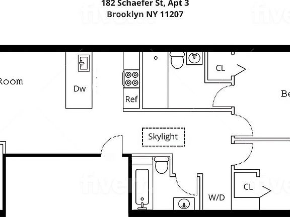 Experience Luxury Living on Schaefer Street. NO FEE APARTMENT Welcome to your dream loft in the heart of Bushwick! This stunning residence boasts 18-foot high ceilings, a striking skylight, and a premium built-in sound system. Enjoy the convenience of an in-unit LG washer/dryer and modern amenities like a virtual intercom and Mitsubishi heating/cooling with HEPA filtration. Elegant Interiors: Large windows fill the space with natural light Exquisite hardwood floors throughout Two decorative fireplaces with exposed brick Generous living room perfect for entertaining Modern kitchen with new stainless-steel appliances, including a dishwasher Private outdoor terrace Unmatched Convenience: Just four blocks from the L train at Wilson Avenue Surrounded by fantastic bars, restaurants, and more Don't miss out on this unique opportunity to live in luxury. Contact us today to schedule a viewing!