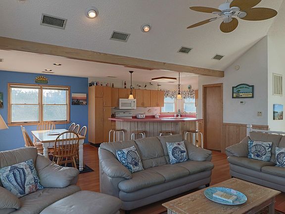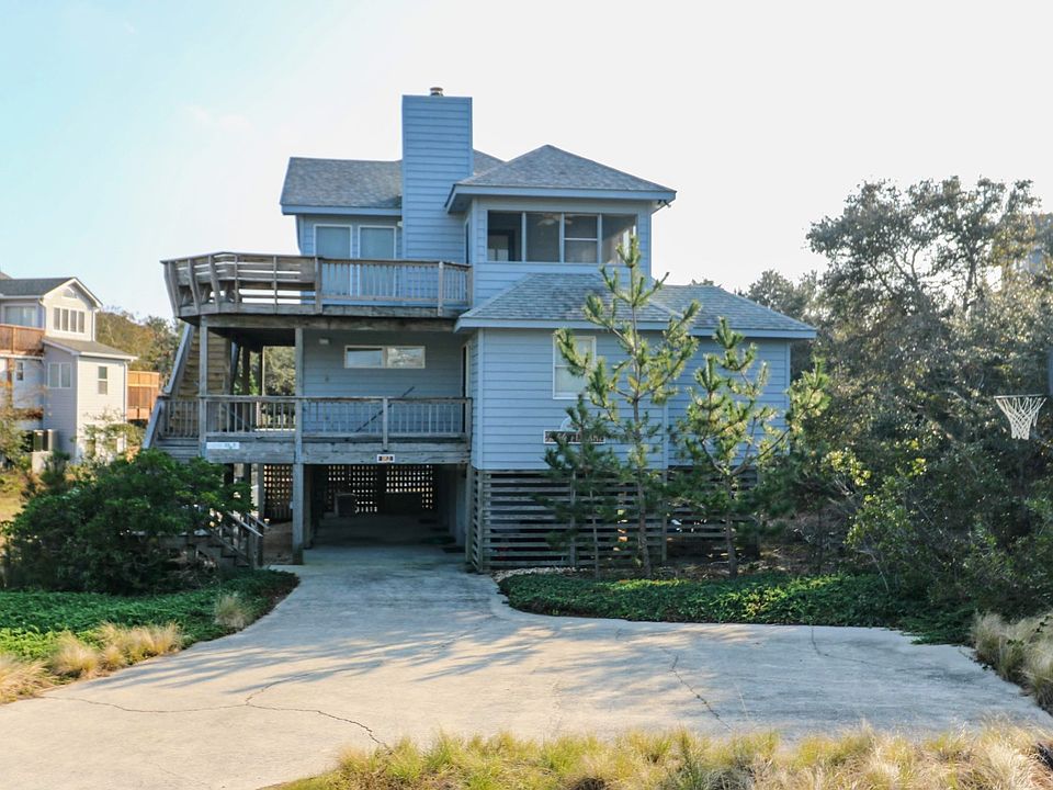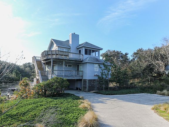 In The Heart Of Duck! X Flood Zone! Lovely Family Second Home or Vacation Rental Income Investment in the popular Subdivision of Schooner Ridge in Downtown Duck NC. 182 Schooner Ridge Dr is tucked away in the dunes on a quiet street just waiting for the family to arrive. X Flood Zone! Three levels of colorful charm with 5 bedrooms-2 Master Suites- a King and a Queen, 1 bunk room for 4, Twin Room, a Queen Bedroom, spacious living areas, large kitchen, dining for 8 at the table plus 4 at the Breakfast Bar, screened porch and lots of decking, both sun and covered. 3 full and 1 partial bath in this comfortable, inviting cottage. Inside Laundry too! Dry Entry. Extra Storage. Hot Tub, Horse Shoes, Volley Ball on your own private court, Shoot Hoops, Barbecue next to the picnic tables in the yard! Everything one needs in a second home & just a short walk (500 yards) to the beach. There are 2 outdoor swimming pools; one oceanside with dune top gazebo and huge sun deck overlooking the ocean and the other at the Recreation Center which also offers exercise equipment, indoor pool, racquet ball courts, baby pool and playground. Easy stroll into downtown Duck with all the shops, great food, galleries and amazing outdoor entertainment it offers. Perfect for your family's second home or as a resort investment in thrilling Duck NC
