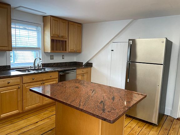 Large 3 bedroom, wood floors, private deck, sky lights, cathedral ceiling, loft areas over all bedrooms, in downtown Newport. 1 block from water front, restaurants, shops. Renovated with new cabinets, granite countertops, granite island, stainless steel appliances, tile bathroom. New gas hot water and gas heating system. New outdoor stone patio yard. Available 01 July, 2025. $3000 per month. Long term (12 month) lease only. Year or longer lease only