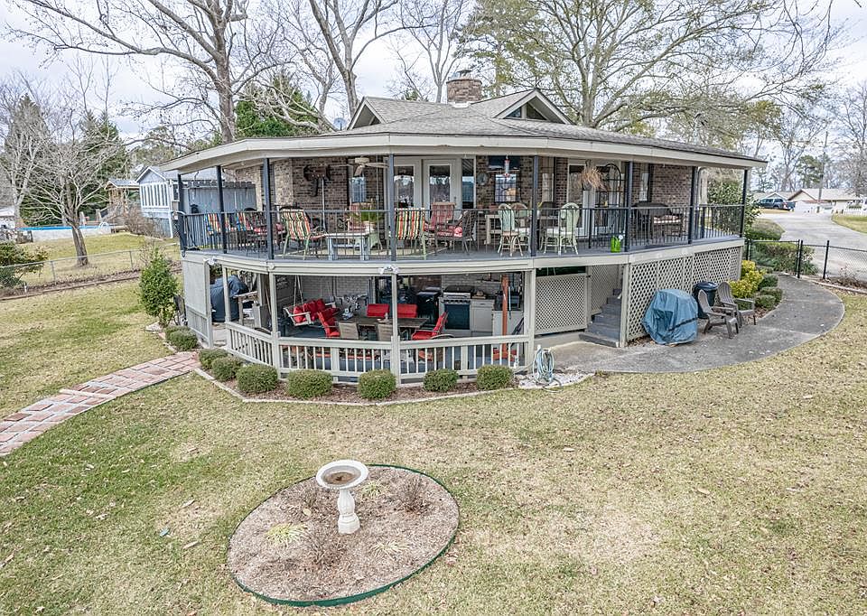 Excellent lake home located in the always desirable Jackson Estates neighborhood. This 3BR/3B home offers excellent lake views of one of the main channels from anywhere on the deck and patio. Newer double boathouse, max dock, seawall and boat ramp at the lake's edge. Vaulted tongue and groove ceilings in the living room and updated kitchen with granite countertops. New LVP flooring throughout the main level with tile baths and master bedroom. On the basement level there is a spacious rec room with a full, tile bath and a separate work shop area to store all of your tools and toys. The main level has 2124sqft with an additional 840sqft in the basement. 2 car detached garage on the road side and another storage building on the lake side gives plenty of room for storage. The entire back yard overlooking the lake is fenced in. Heat pump is only 2 years old with new ductwork. This home has been very well maintained and has some of the best views on the lake all within 10 minutes of Kroger.