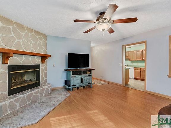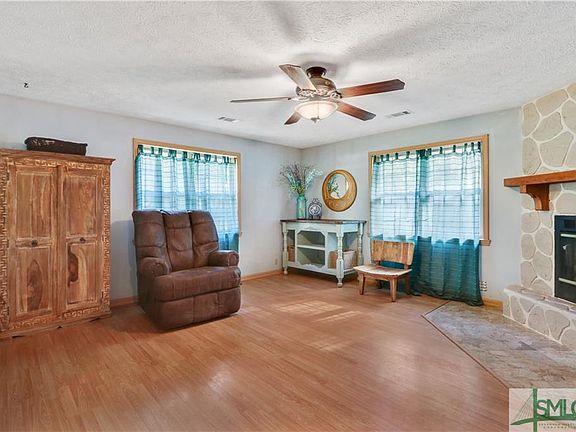 Adorable 2 bedroom, 2 bath home on a spacious and private 4+ acre lot, located in Guyton. Featuring a large sunroom, great room with a fireplace, kitchen with a new dishwasher, large master bedroom with trey ceiling and a walk-in closet, office/room which could be a 3rd bedroom, laundry room with cabinets and a sink, fully floored attic, a double carport, 3 storage sheds, irrigation system in the front yard, roof is 3 years old, deck, fenced premises, additional septic tank for another home site and much more! Convenient to Pooler, Savannah and Rincon. No HOA!