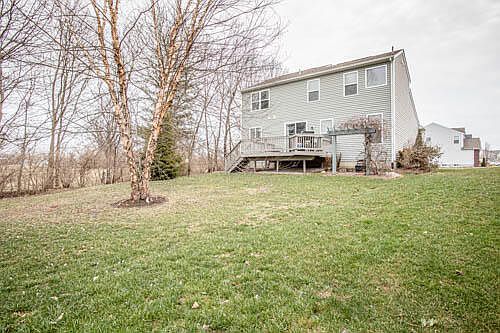 You don't want to miss this great home in a wonderful neighborhood. Located on a dead-end street with no houses on 3 sides. When you enter the home you will notice the beautiful hardwood floors and tall ceilings. The first floor has a bright foyer with arched doorways and half bath. The kitchen has all appliances, a pantry and a great island for additional prep space and seating. It is open to the dining area and the family room. With large sliding doors that open to the deck. Upstairs is the primary suite with a beautiful tray ceiling and attached bath with a separate tub and shower. There are 2 additional bedrooms, a full bath, and upstairs laundry. Outside is a covered front porch, a nice deck and firepit area. All of this is located minutes from shopping and dining. Schedule your appointment today. This one will not last long.