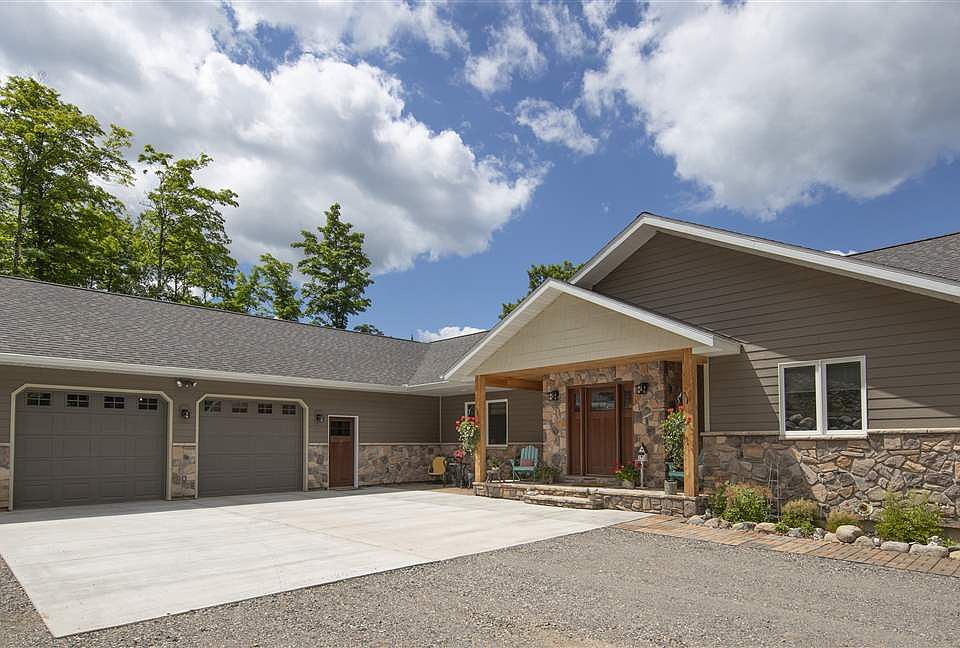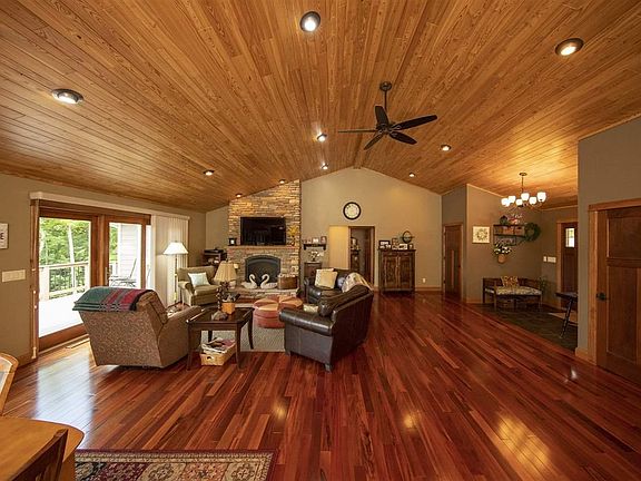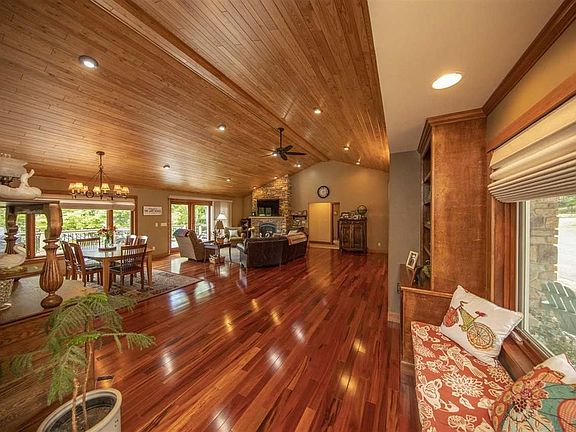 Breathtaking views? Waterfront Executive Ranch Style Home? Are these some of the qualities you have been looking for in a home? Make your appointment then today to see this gorgeous home on Swan Lake. There are gorgeous views to the lake from all the lakeside windows! This is a quality custom built meticulously done 4 bedroom,4 bath open concept home with attached two car garage. As you walk through the front door you feel the warmth of the home from the warm hardwood Brazilian flooring and custom stone fireplace. Breathtaking views from the living room to the kitchen of Swan Lake will keep you staring for some time. Entertaining is a breeze with the design of the open living room, dining area and kitchen. Kitchen also has a large island area that also would be a great gathering place for all to sit around. Custom kitchen has gorgeous distressed Cherry cabinets, Viking Range, Subzero Refrigerator and double ovens. What fun it is too cook and entertain here! Off the kitchen is a pantry/laundry room - yes main floor laundry! Then as you go down the hallway you will enter into the large master suite with walk in closet and large master bath , double vanity sinks, with separate tiled walk in shower and spa tub. Beautiful views boast the master bedroom with natural lighting. Off the living room there is another bedroom and a sunroom to relax and unwind in after a long day of work or fun. There also is another full bath in this area. Finished lower walkout level has another bedroom, full bath and finished area for entertaining. Lower level could be another separate living area like an in-law suite. Metal tin on the ceilings and barn wood on the walls in the lower level make this feel so unique and warm. Geothermal heating and cooling with Sinergy 3D Water furnace. Home has plenty of storage throughout. Make your appointment today to see this gorgeous home on Swan Lake.