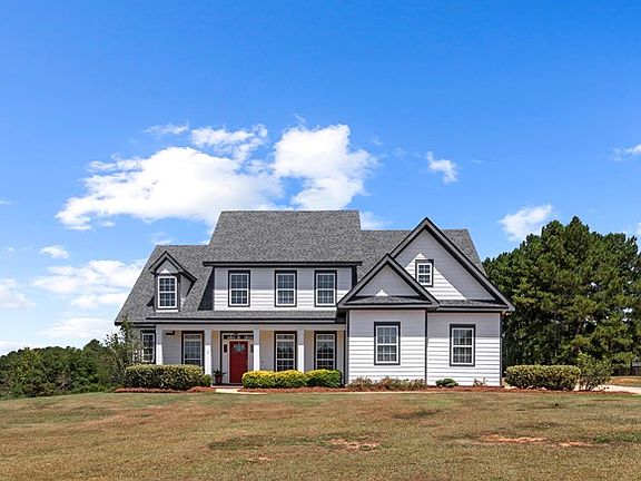 Discover your dream home in this beautifully designed modern farmhouse, nestled on approximately 2.74 acres with neighborhood ponds nearby. This 2,924 sq ft home combines style and functionality with an open concept and soaring high ceilings, creating a perfect space for entertaining and everyday living. Step inside to find an inviting open floorplan highlighted by engineered wood floors throughout the main level. The spacious living areas flow seamlessly into a charming breakfast nook and a separate dining area. The kitchen features sleek granite countertops and a brand-new refrigerator, ideal for preparing your favorite meals. The home boasts five generously sized bedrooms, including a luxurious master suite and a convenient mother-in-law suite, both located on the main level. Four of five bedrooms offer walk-in closets, providing ample storage space. With 3.5 well-appointed bathrooms, comfort and convenience are a top priority. Additional features include a state-of-the-art rain soft water system, spray foam insulation for energy efficiency, and plenty of storage options, including attic space. The property also includes an impressive 1,100 sq ft metal building with a covered porch, offering versatile usage possibilities. Enjoy outdoor living with front and back porches that provide serene views of the surrounding landscape. A 2-car attached garage ensures ample space for vehicles and additional storage.
