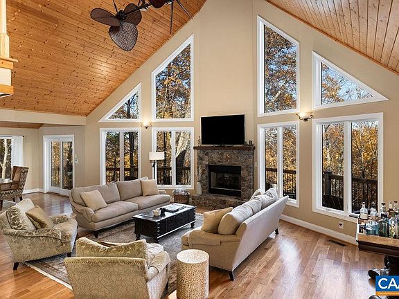 Built by reputable builder RM Gantt, this mountain beauty is on a perimeter lot facing east towards the Rockfish Valley of Nelson County. With wonderful sunrises, enjoy your coffee in the very spacious great room or on either of the two decks or covered outdoor dining area. The lower level of the property is complete with a rec room with a pool table, bar, climbing wall, and a fourth bedroom. This retreat is above a Wintergreen hiking trail, making this home a great launching pad for all of your mountain adventures!