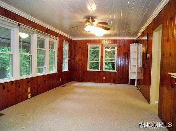 Charming mountain retreat with beautiful long range mountain views. You will think you are so far away from it all but only minutes to everything! Updated kitchen and bath. Very clean and move in ready. Replacement windows, central heat and air. Real wood paneling. Second room used for laundry but large enough for bedroom or office. Screen porch. Nice,dry basement storage. Security gate and home security system. Many building spots on 8 acres.