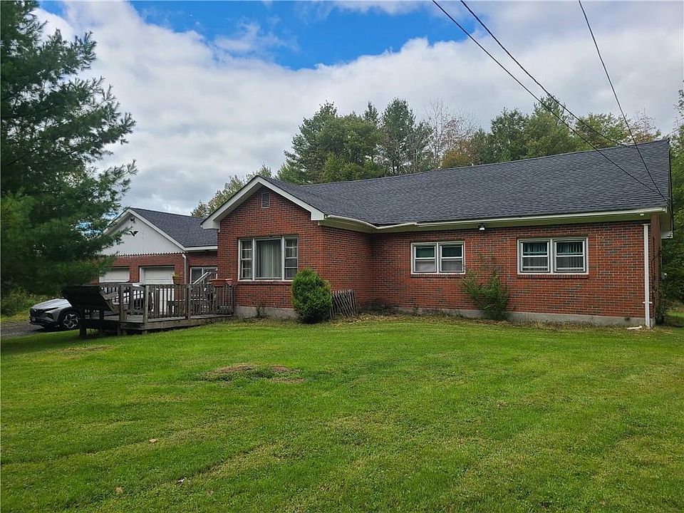 Do not miss the opportunity to own this Brick Ranch located on a very private 2.5 acre lot. Inside you will find hardwood floors throughout the home. Tons of cabinet and counter space in the kitchen as well. The living room is enormous and won't disappoint during family gatherings! The main bathroom has taken a makeover featuring tiled flooring and tub surround as well. The main bedroom is nicely sized as well as the 2 others. The home also sports a newer roof along with newer windows! 2 car garage and basement for storage as well. There is a breezeway style laundry room! Lots of potential with this home!... Additional Information: Amenities:Storage,HeatingFuel:Oil Above Ground,ParkingFeatures:2 Car Attached,