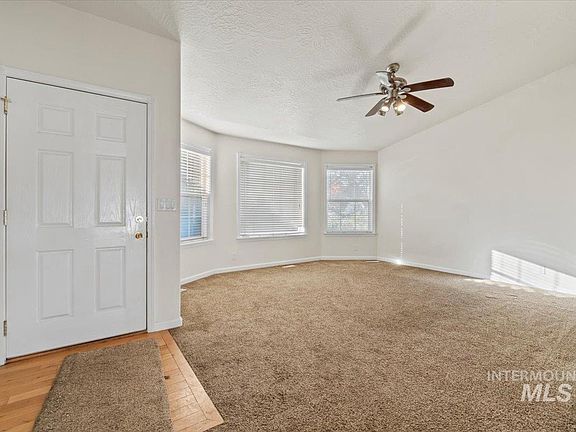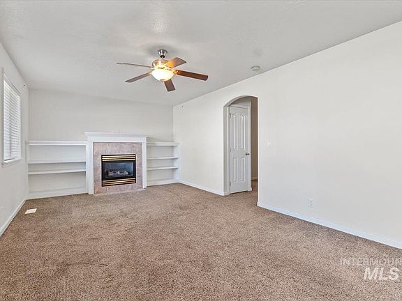 check it out! This beautiful 4 bed,3 bath two story home,located in an established Mountain Home neighborhood. Inside the home you are greeted with a large living room space with windows and vaulted ceilings that carry through the kitchen and dining room with new vinyl flooring. The kitchen has plenty of counter space and large corner pantry. Adjacent to the kitchen there is a larger living room with a preinstalled speaker wire system set up for a surround sound and natural gas mantle fireplace in between shelves also on the first floor there is a guest bedroom with an adjacent full bath near the door leading to the garage there is a washer/dryer area upstairs there is the master bedroom with ensuite bathroom with his/her adjoining sinks and mirror walk in closets and a full bath down the hall are two more bedrooms with a shared full bath. The home offers mature landscaping in the front and a fully fenced backyard. A three car garage and driveway gives plenty of space for your hobbies and parking for guests.