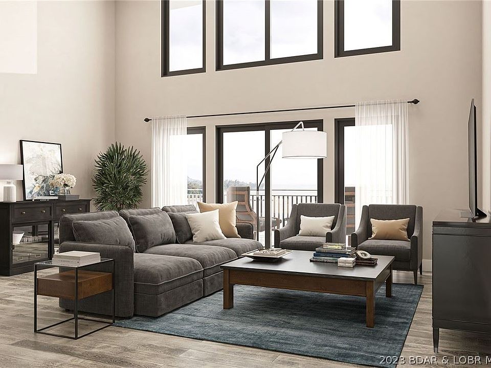 Top floor condo at Lake of the Ozarks hottest luxury condo development! Elevating the experience of condominium living through resort-style aesthetics & first-class amenities. This top floor unit features vaulted ceilings and a wall of windows like you have never seen in a condo at the lake! One building with 39 units, all situated on 6 acres in a prime development spot. Breathtaking views, gentle topography, cove protection & close to every amenity you could ask for. Ample parking, private garages for cars/golf carts available, trailer parking, boat ramp, boat slip options & a resort style pool. Pool will feature cabanas, lounge chairs, and an outdoor kitchen. A true oasis with walking trails, lakeside firepit, clubhouse, fitness center & so much more. Quality construction with elevator, metal roof, hard siding & great finishing options. Construction to be completed in 2023, only 8 units left, so you better hurry.
