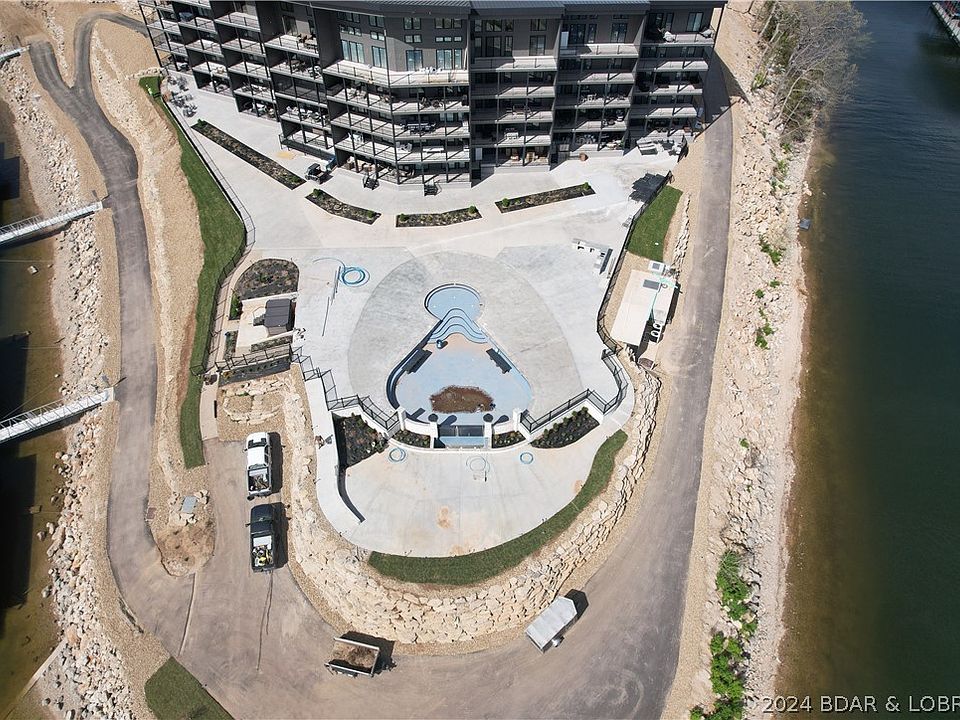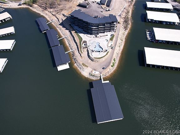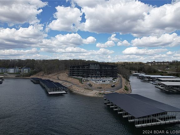 Top floor condo at Lake of the Ozarks hottest luxury condo development! Elevating the experience of condominium living through resort-style aesthetics & first-class amenities. This top floor unit features vaulted ceilings and a wall of windows like you have never seen in a condo at the lake! One building with 39 units, all situated on 6 acres in a prime development spot. Breathtaking views, gentle topography, cove protection & close to every amenity you could ask for. Ample parking, private garages for cars/golf carts available, trailer parking, boat ramp, boat slip options & a resort style pool. Pool features cabanas, lounge chairs, and an outdoor kitchen. A true oasis with walking trails, lakeside firepit, clubhouse, fitness center & so much more. Quality construction with elevator, metal roof, hard siding & great finishing options. Go from the top floor unit to the dock with zero steps! Also this has to be one of the most stunning views at the lake that still offers cove protection. What a wonderful location.