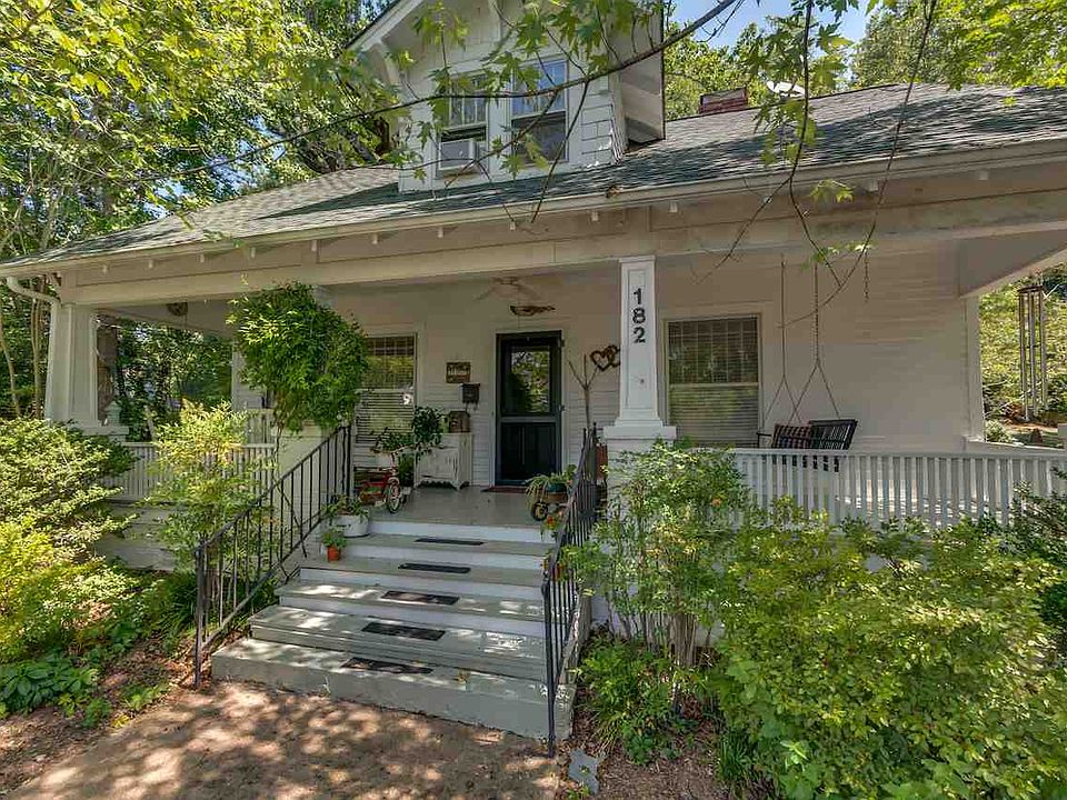 CHARMING Bungalow in downtown Rutherfordton w/in a short walk on sidewalk to Downtown Restaurants, Shops, etc. Wonderful condition w/ updated Kitchen & formal Dining Room, plus Master Bedroom & a 2nd Bedroom (currently used as Den), full bath, formal Living Room & laundry/utility room off rear. Upstairs is the 3rd bedroom, a full 2nd bath, loft & 2 add'l spaces not counted in sqft due to low ceiling height (see pics). 8' Covered Front Porch & private wooded side yard w/ paver Patio & Fountain!