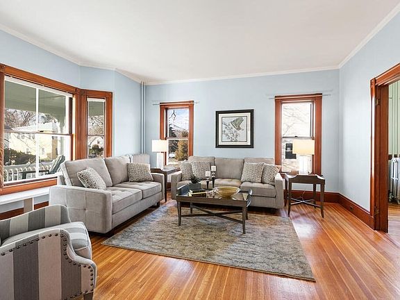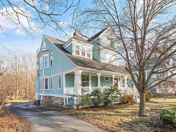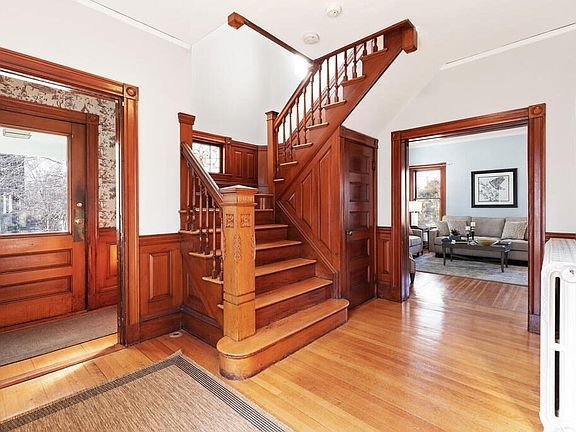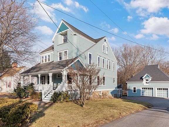 Beautiful Victorian style colonial located in a prime in-town location just two blocks from historic Lexington center - perfect walkable lifestyle!. A gracious vestibule and foyer w/quarter-sawn oak, high ceilings, sliding pocket door, wainscoting, and stained glass sets the tone. The spacious 1st floor features an elegant dining and living room, both featuring wood-burning fireplaces designed with ornamental tile and woodwork. There is a rear set of stairs that leads to the second floor directly from the updated, eat-in kitchen and breakfast room, office/BR and a full bath completes the 1st floor. The second and third floors with 7 bedrooms and two BA's allows plenty of space for a master bedroom suite, study, home offices and playroom. Two-story carriage house that can accommodate 3-cars and features a recently added fitness room with sliding glass doors overlooking gorgeous woodlands. Updated systems: updated electric, recent roof, new AC & boiler freshly painted exterior.
