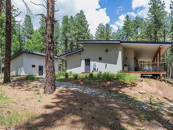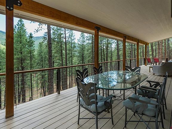Newer custom-built modern home perfectly situated amongst tall pines above the Los Pinos River in the Coolwater subdivision and only a few minutes from Vallecito Lake. This gorgeous, fully furnished, two-bedroom, two-bathroom home with an office and open floorplan was built in 2018 and has proven to be a successful short-term rental. The vaulted tongue and groove ceilings and walls of windows make this home light and bright. The gourmet kitchen features a lovely stainless appliance package, custom cabinetry, an island with a large stainless sink and ample counter space for prepping food and entertaining guests. The Jøtul stove in the living room keeps this well-insulated home warm in the winter months. The spacious primary suite features a sizeable closet space and a beautiful large bathroom with double vanity. There is also a sliding glass door that opens out to a deck, creating the ideal spot for a hot tub. There is an extended canopy over the front porch and an expansive covered back deck perfect for taking in the sounds of the river flowing below you and also reduces the need for snow removal in the winter months. The ceilings are constructed with 12' Structural Insulated Panels and have a rating of R38, and the walls are rated R19. There is a detached two-car garage with ample space for vehicles and all your gear. Enjoy the short walk to the river where you can sit and take in the soothing sounds of the water or spend the day fly fishing. Don't miss this incredible opportunity to own a highly efficient, newer home near Vallecito Lake, not far from Durango.