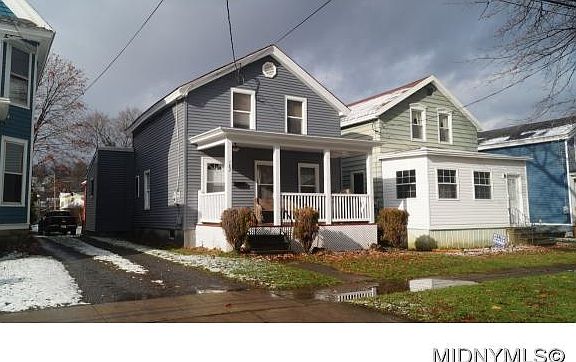 Ilion village home with lots of improvements - new siding, replacement windows updated heat system and electric entrance and wiring and fully insulated for low heat bills! Home features three bedrooms , one on first floor , a formal dining room , eat-in kitchen and 1 and 1/4 baths. Lot is deep and has a carriage barn with walk-up stairs with workshop and storage.