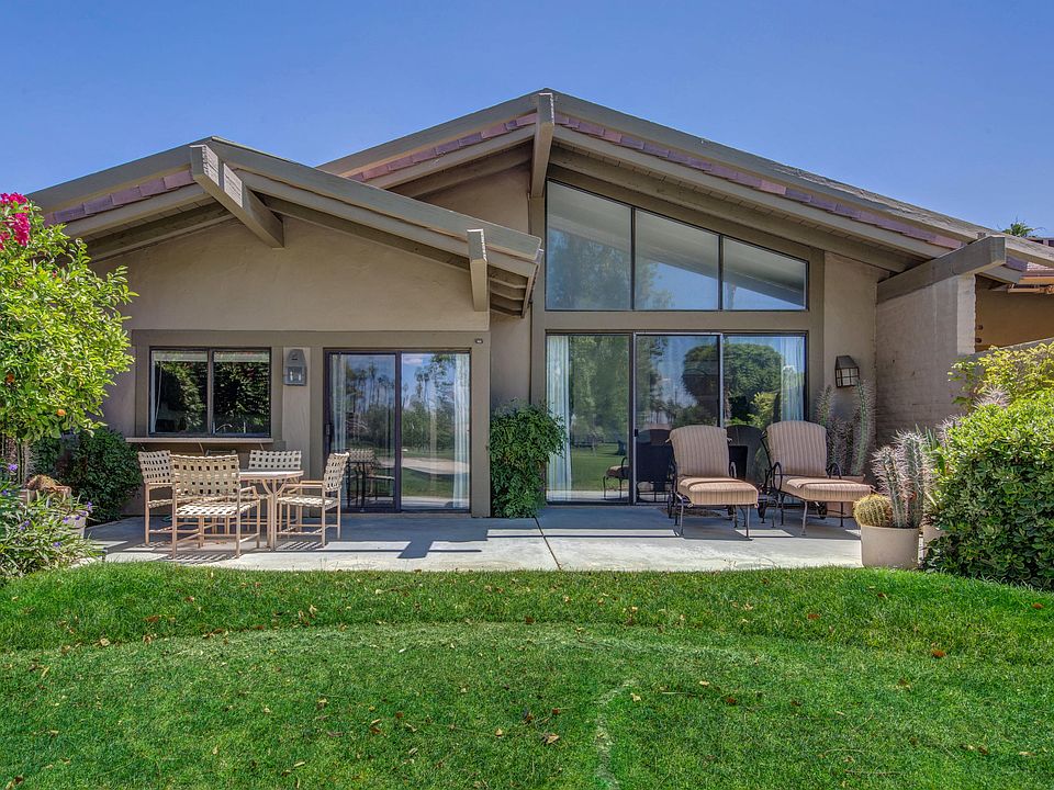 Pack just your toothbrush, as this 3 Bedroom 4 bath condominium that feels like home comes furnished. Relax and enjoy the lifestyle at the Lakes Country Club in Palm Desert with Southern back patio views of the first hole on the North Green. Popular Laramie floor plan with 3 Master Bedrooms and converted atrium into living floor space as a formal dining room or a den. Remodeled kitchen, granite countertops and stainless steel appliances. Home features a fireplace, clerestory windows for great views and laminate floors, tile with carpet in the bedrooms. All 3 rooms are en-suite, but master suite features extra large bathroom with a tiled in shower, dual vanity, separate jetted tub and huge walk in closet. Wine refrigerator no longer available. Community pool is just steps away. The Lakes Offers 27 holes of golf, 9 Pickleball courts, 11 tennis courts, 2 pop tennis, fitness classes and incredible dining. Just minutes away from El Paseo, shopping & fine dining.