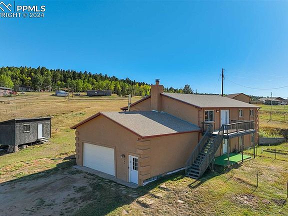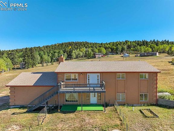 Welcome to this inviting 2,778 sq ft raised ranch home in Sherwood Forest Estates, a tranquil mountain community in Divide, featuring excellent sun exposure with breathtaking vistas of Pikes Peak, the Sawatch Range, and the surrounding vibrant pine and aspen tree lines. Set on a .69-acre lot, the main level boasts an open layout, allowing for seamless flow between the kitchen, dining, and living areas, designed to enhance your enjoyment of the elevated scenery. The kitchen, outfitted with stainless steel appliances, an island, and gas cooking, is perfect for meal prep while soaking in the views. The dining area opens through French doors to a deck, ideal for morning coffee or evening relaxation with stunning sunsets. The living room, with its cozy atmosphere enhanced by a gas fireplace and a strategically placed window showcasing your western view, is perfect for gathering. The primary bedroom serves as a private retreat with a 5-piece ensuite bath and a walk-in closet, while a convenient half bath is easily accessible for guests. The walk-out lower level offers a second family room, two additional bedrooms, a full bath, a laundry area with storage, and access to an oversized garage. Built in 1996, this home is well-maintained yet offers opportunities for updates, allowing the next owner to make it their own. A fresh coat of paint and a few personal touches would instantly transform the space, while the layout and location provide long-term value. Just 45 minutes from Colorado Springs, enjoy peaceful surroundings with year-round access to Divide, Woodland Park, Florissant, and Cripple Creek for local dining, shopping, and entertainment. Nearby Mueller State Park, Pike National Forest, the South Platte River, and Eleven Mile Reservoir offer endless opportunities for camping, fishing, and outdoor adventure! Come revel in the perfect blend of versatility, seclusion, and the quintessential charm of Colorado mountain living!