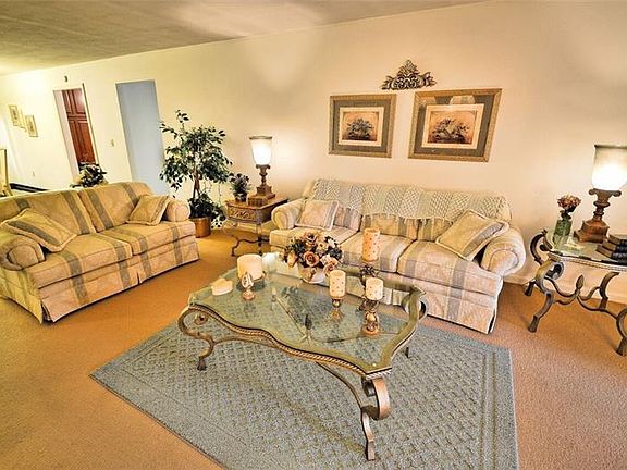 Elegant style in this 2-3 bedroom over 2000 sq ft condo offering easy one floor living. Open floor plan flows from formal dining room to expansive living room and sunlit family room enclosed with sliding doors. New High and Custom kitchen with granite counter tops, tile back splash, new ceiling, cherry wood self close cabinetry and all stainless steel appliances. Huge master Bedroom with ensuite bathroom complete with a double marble vanity sink, tile flooring, Jacuzzi step up tub and three closets including a walk in-all with Custom Closet shelving and Drawers. 2nd full bath also with tile flooring offers a walk in shower with a seat and a linen closet. Abundant storage space including two exterior storage closets and covered garage access are added features. Lot is tree Lined which allows for privacy yet an enjoyable golf course view. This property has over 50K in upgrades including metal ceilings in 2 rooms, upgraded flooring, highly upgraded kitchen, and 3rd bedroom/office.
