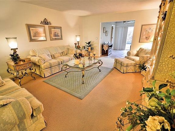 Elegant style in this 2-3 bedroom over 2000 sq ft condo offering easy one floor living. Open floor plan flows from formal dining room to expansive living room and sunlit family room enclosed with sliding doors. New High and Custom kitchen with granite counter tops, tile back splash, new ceiling, cherry wood self close cabinetry and all stainless steel appliances. Huge master Bedroom with ensuite bathroom complete with a double marble vanity sink, tile flooring, Jacuzzi step up tub and three closets including a walk in-all with Custom Closet shelving and Drawers. 2nd full bath also with tile flooring offers a walk in shower with a seat and a linen closet. Abundant storage space including two exterior storage closets and covered garage access are added features. Lot is tree Lined which allows for privacy yet an enjoyable golf course view. This property has over 50K in upgrades including metal ceilings in 2 rooms, upgraded flooring, highly upgraded kitchen, and 3rd bedroom/office.