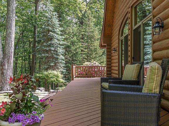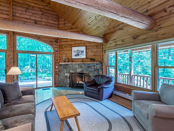 Log cape-style home nestled on 14.98 acres is being offered with an additional 3.58 acres available for a total of 18.56 acres Asking $649,900. This home sets back to offering complete privacy. Covered porch runs the length of the house overlooking an open front yard. Front entry welcomes you to the Great room with cathedral ceilings. Wonderful exposed beams. Native Fieldstone gas fireplace, hardwood floors. Great room opens to dining room and kitchen with center Island, offering granite countertops. New gas cooktop and new electric wall oven. Under cabinet lighting. The main living area offers an abundance of natural light that flows through. First floor mudroom and laundry room. Two bedrooms plus a full bath recently renovated complete the first floor. Second floor Master bedroom with recently renovated full bath, walk in closet plus additional storage space. Sliders from great room off to side deck and patio give you the enjoyment of the sounds of your water garden. A walking path around the home let you enjoy your well-maintained garden with a wide verity of plantings. Oversized two car garage. Circular driveway. Full basement. A/C. Central Vac. Generator hook up. This home has been meticulously cared for over the years. Close to the Warren town center and Lake Waramaug. This is a must-see property.