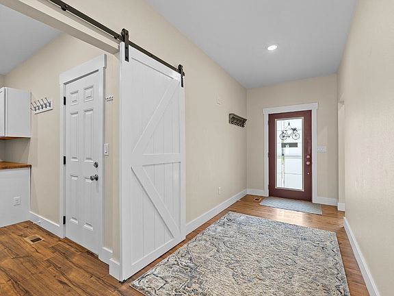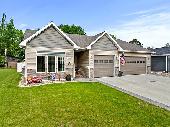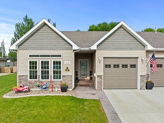 Modern ranch-style home with 1,840 square feet of main floor living in SE Minot. This home features 3 bedrooms, 2 bathrooms and plenty of living space. Open layout with huge living room featuring lots of light, large windows with electric blinds, hard surface, gas fireplace and vaulted ceilings. The kitchen boasts beautiful quartz countertops, stainless steel appliances (2 refrigerators+gas range with hood), HUGE pantry with built in microwave and cabinets/shelving, beautiful cabinetry, built in quartz dining table with sliding doors to stunning backyard and much more! The large primary bedroom features a private bathroom & walk-in closet with custom storage and is connected to the laundry with ample storage, washer & dryer, freezer and cabinets. Bedrooms 2 & 3 are both good sized and have a full bath between them with bathtub/tiled shower and custom shower door. The 3-stall garage is completely finished and has a gas heater, TV and floor drains. The backyard is beautiful with landscaping, privacy and 14x52 concrete patio, perfect for entertaining or just relaxing. There is also a 16x16 shed that has power, is heated and shelves for storage. This home has so many amenities you must go and check it out!!!