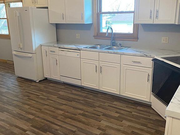 Adorable move in ready 2 bedroom ranch with lots of updates. Large living room with bay window, very large open dining room and kitchen. New counters less then a month old, flooring 2 weeks old. Ready for backsplash just didn't have time to install. One full bath and 2 nice sized bedrooms. Any closets? Yes, 5 on the main floor not including the bedrooms. The basement is just waiting to be finished. There is a patio behind the garage with pull down shade. and a storage shed in the back yard. A one car attached garage rounds out this unbelievable listing. Call your local realtor today for a personal tour.