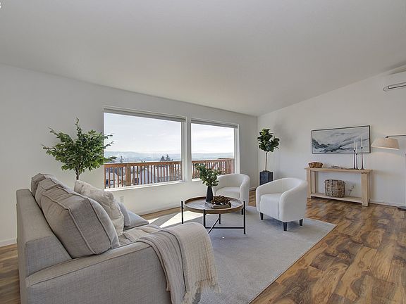 Pristine remodeled home with views of Columbia River and three mountains from your living room! This home has updated butcher block counters in kitchen, LVP flooring on main level and recently remodeled bathrooms upstairs. The downstairs includes 2 bonus rooms, a bedroom, storage, and laundry. Back deck overlooks fenced yard that feels private and spacious. Parks/water access within walking distance. This quiet neighborhood home, and the views, can be yours today.