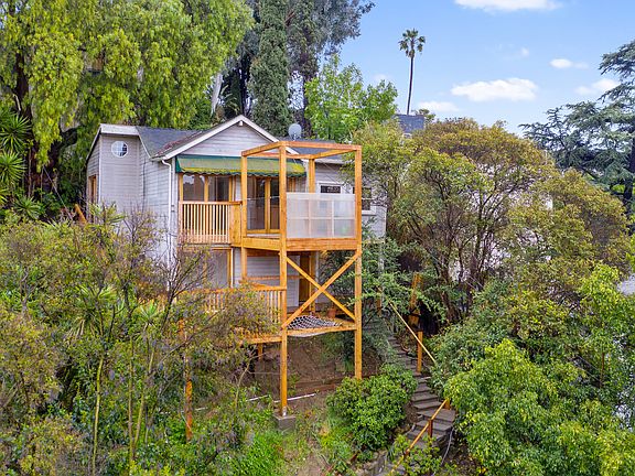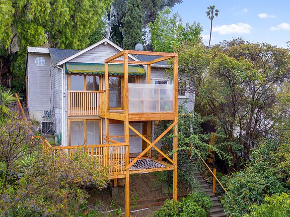 This tree-top level California Bungalow with beautiful views of the mountains and city lights is your opportunity to feel like you are on a retreat but with the conveniences of city life close by. Located in the heart of Echo Park, the property is in close proximity to restaurants, shops, galleries, cafes, Echo Park Lake, Dodger Stadium, hiking trails as well as downtown Los Angeles. The second floor Master suite has a vaulted ceiling with an en-suite bathroom and direct access to an outdoor patio, the living room has vaulted ceilings with exposed beams and a wonderful view, the kitchen has ample storage and leads to the laundry room. On the lower level is the second bedroom with a great view, direct access to a large patio, and the second bathroom. The secluded multi level yard has a ton of potential and the LARD3 Zoning might allow for further development. If you are looking for a place in the city where you can feel like you are away from the grind, this home is a must see.