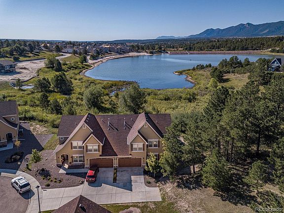 WOW! LAKESIDE LIVING! Bring your poles, boards and kayaks, open your back gate and you are steps from the water! The inviting entry draws you into this private oasis. This retreat boasts vaulted ceilings, wood floors and an open floor plan within a warm and bright setting. Enjoy main level living including Master bedroom, laundry and office. The kitchen includes granite countertops, gas range, walk in pantry. The kitchen island is framed by an exquisitely made antique reclaimed barnwood light fixture. The upper level includes 3 bedrooms, loft and media room. Cozy up to the floor to ceiling stone gas fireplace, or spend evenings on the beautiful stamped concrete private patio, enjoying the spectacular mountain and lake views. Just and a few minutes walk to historic downtown Monument but miles away from the city. Truly a one of a kind property. This one won't last long...