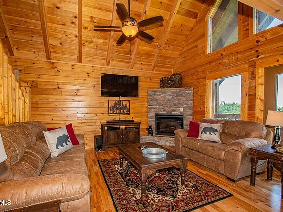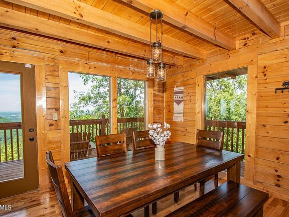 This stunning 4 Bedroom/3 Bath true log cabin sits on a hill top above Dollywood in Eagle Crest Resort - an established cabin community with a brand new in-ground pool for guests. Just minutes from Dollywood and all the attractions of Pigeon Forge, this is convenient and close-to-town. Solitude, unobstructed mountain views, and amazing sunsets are the sought-after features of this cabin nestled in a cul-de-sac on the edge of the resort. Cabin boasts of a complete wall of windows in great room to take in the majestic mountain view--access to wrap around covered porch with rocking chairs and hot tub. An incredible bonus is the nightly fireworks display that Dollywood does during the summer months- you can watch them off the back deck of this cabin.