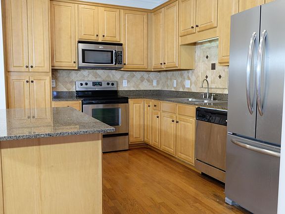 Great Townhome with stainless appliances, granite counters, fireplace, private deck, one car garage, hardwood downstairs, carpet upstairs. office area outside master bedroom. Complex has pool. Sq ft. tax records, one year lease and No pets Tenant pays water, electricity, and gas