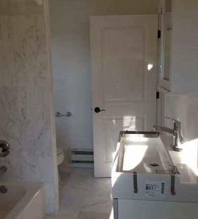 This brand new 1 bed/1 bath apartment features: Hardwood floors throughout All new appliances-microwave, dishwasher, fridge Marble bathroom Wood butcher block counters Updated lighting throughout This third floor unit is a must see! Private entrance. Washer/dryer available IN UNIT for an additional $50/month. Option to renew lease after 1 year.