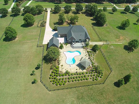 Stunning 6 bedroom 4 bath home. Gourmet kitchen-hardwoods, granite, custom cabinetry, SS appliances, and upgraded trim package. Sep dining room 12+. Spacious living area with vaulted ceilings. Owners suite-vaulted ceilings, custom trim with pool view. Master bath has sep tub/shower, dbl vanities with granite. Large guest rooms above w/ new carpet and jack and jill bath. Fully finished basement w/bath. Detached garage. 7.63 +/- acres fully fenced. Large vinyl pool w/custom lighting. Entertaining sunroom and deck over looking pool. Must see!