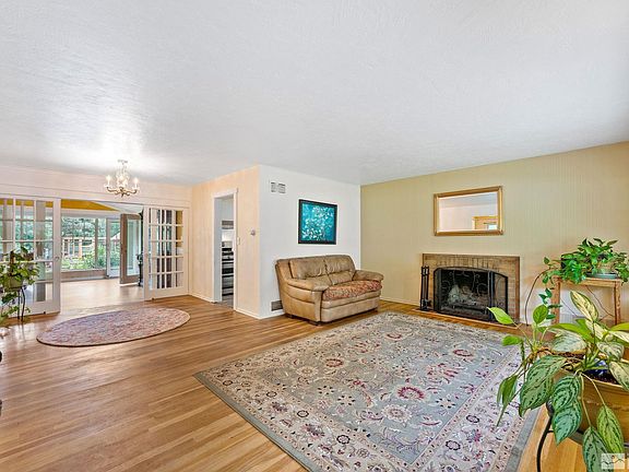 Everything charming...the house, the garden, the mature neighborhood, the nearby park...so much to fall in love with! The house has wood floors, 2 fireplaces, a family room with high-ceilings across the back of the house with views into the garden. Speaking of the garden...apple, peach, nectarine, plum, apricot, grapes, blackberries, strawberries, raised bed garden, flowers and flowering trees. You will never want to leave! Plus a detached garage/workshop and stick-built he-shed/she-shed for storage!, Plenty of room to park an RV too. Some features include: new exterior siding, newly converted 3rd bedroom and laundry area (used to be garage - no permits) and so much more! Seller is including refrigerator, washer, dryer, microwave, small beverage refrigerator with ice-maker and stand-alone freezer. This home has been well loved and is ready for it's new owner! Square footage = 1224 house + 364 converted garage (per assessor) and 100 sqft enlargement of family room (per seller). Total 1688 sqft to be verified by buyer. Plus about another 800 sqft between detached garage and storage building.