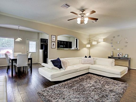 Immaculate 3/4 bedroom home in the peaceful and quiet Oak Forest of Marbella subdivision surrounded by woods and tranquility. The home offers a spacious open floor plan with an inviting living, dining and kitchen setting great for entertaining with 3 bedrooms and game room(possible 4th bedroom/study)upstairs. Features include Granite countertops, laminate wood flooring throughout the first floor, carpeting on the second level, and relaxing garden tub in the master bath. Large secluded backyard with woods behind. Gated community with security cameras throughout, a childrenâs playground, pond with walkway and exercise equipment. Great Location! Near by all the Heights and Oak Forest shopping, dining and bars, down the street from T C Jester Park/ Dog park, and easy access to major highways. Outdoor patio furniture, fence lights and refrigerator in garage are included in sale of the home.