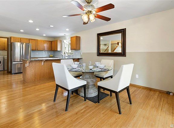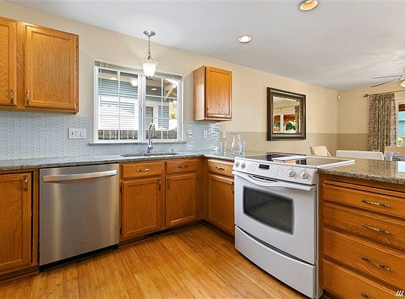 3BD, 2-1/2BA blocks from downtown Mount Vernon. Granite countertops & eat-in bar accented with glass backsplash in Kitchen. Bamboo floors on main level, vaulted ceilings & newly carpeted open staircase. Covered & open deck space and three tiered waterfall/fountain water feature for great outdoor entertaining. The Master has en suite bathroom leading into a walk-in closet. Laminate flooring on 2nd level. Pet-free home. Concrete pad for RV. Close to amenities. Plenty of parking. Easy I-5 access.